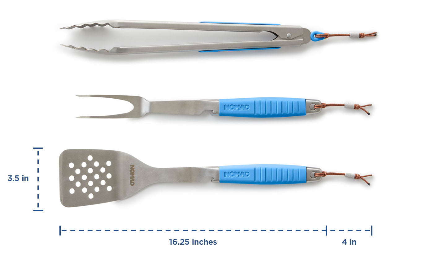 Fully-forged from stainless-steel with platinum-cured silicone handles making these BBQ Tools are naturally corrosion-resistant and built for whatever the elements bring your way.