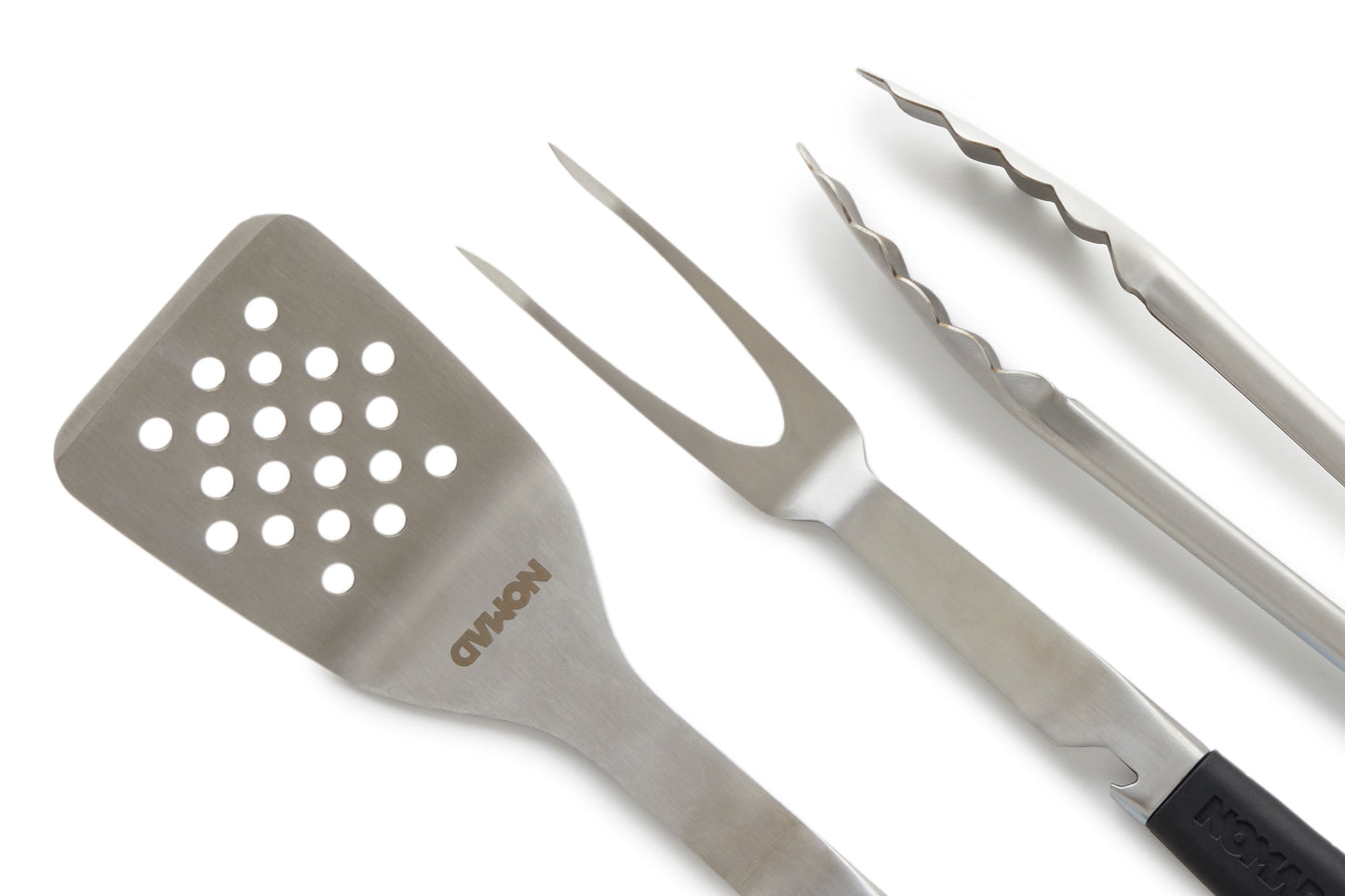 Fully-forged featuring extra thick-gauge tempered stainless-steel, these tools won't bend or break and are built to last. Built with ergonomic silicone grips, you feel the quality of these instruments the minute you pick them up — and of course, the integrated bottle opener is a nice touch!