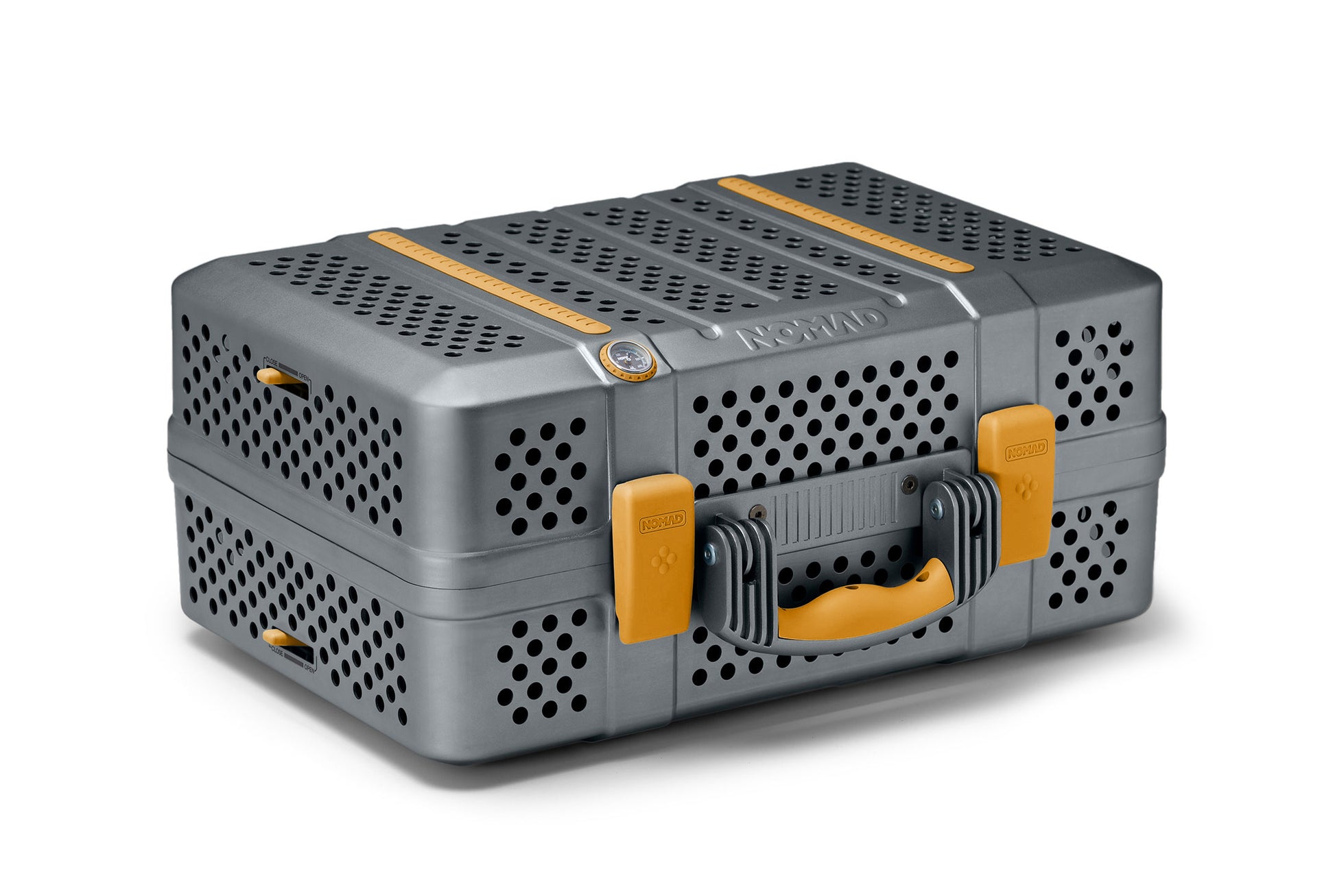 NOMAD packs heaps of innovation & practical utility making it the perfect portable provision for tailgating, camping, hunting, fishing, beach-going, backyard barbecuing or patio perching. With patented thermal architecture and a king-sized cooking surface packed into a compact carrying case, NOMAD is The Holy Grail of grills.